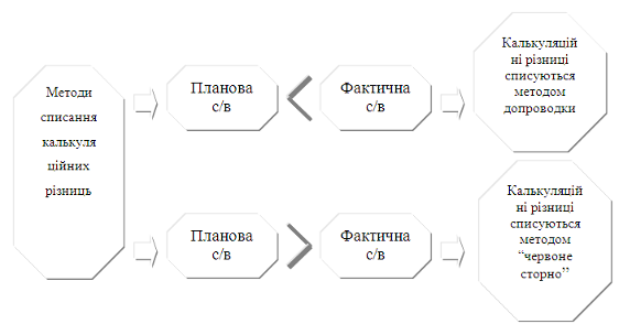 Рис. 1 Методи списання калькуляційних різниць в с/г Наведемо методику розрахунку собівартості картоплі. Картопля