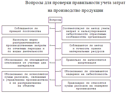 При проверке состава производственных затрат организации на четвертом этапе необходимо установить, какой способ формирования себестоимости продукции (работ, услуг) используется в организации: традиционный для отечественного учета, так называемый калькуляционный вариант, или принятый в международной практике - "директ-костинг" (учет прямых затрат). При первом (традиционном) способе исчисляют полную производственную себестоимость продукции, списывая по окончании отчетного периода косвенные расходы в дебет счетов 20 "Основное производство", 23 "Вспомогательные производства" и на другие счета учета затрат (на которых учитываются издержки по другим видам деятельности организации) со счетов 25 "Общепроизводственные расходы" и 26 "Общехозяйственные расходы". Суммы производственной себестоимости продукции и работ переносят с кредита счетов 20 и 23 в дебет счетов 43 "Готовая продукция", 40 "Выпуск продукции (работ, услуг)", 45 "Товары отгруженные" или 90 "Продажи". При этом способе необходимо обратить внимание на проверку правильности распределения косвенных расходов между объектами производства и калькулирования пропорционально той или иной базе (оплате труда, прямым затратам и др.). Метод "директ-костинг" предполагает разделение всех затрат за отчетный период на производственные (переменные), обусловленные технологией производственного процесса, и периодические (условно-постоянные), в большей степени связанные с длительностью отчетного периода. Периодические затраты собираются на счетах 26, 44 "Расходы на продажу" и не включаются в себестоимость объектов калькулирования, а списываются в конце отчетного периода непосредственно в дебет счета 90. Каждый из двух способов учета затрат имеет свои особенности, но, безусловно, оба требуют контроля достоверности показателей себестоимости. Учет инвентаря и хозяйственных принадлежностей со сроком полезного использования менее двенадцати месяцев в организации ведется на счете 10 "Материалы". Практика показывает, что подобная организация учета значительно снижает степень реализации контрольной функции бухгалтерского учета и требует более подробного аудиторского контроля. Отметим, что нередки факты, когда в затраты данного отчетного периода включают расходы, произведенные в других отчетных периодах. Согласно законодательству и принципу временной определенности фактов хозяйственной деятельности затраты организации подлежат включению в себестоимость продукции того отчетного периода, к которому они относятся, независимо от времени их оплаты. Затраты, по которым нельзя точно установить, к какому калькуляционному периоду они относятся, включаются в себестоимость продукции в сметно-нормализованном порядке. Часто допускаются также ошибки, связанные с тем, что в затраты производства включают начисления и платежи, которые должны покрываться за счет других источников. Например, возникают ситуации, что в дебет счетов 20, 23 и др. относят суммы материальной помощи работникам, дивиденды, начисленные в пользу учредителей и акционеров, тогда как такие суммы должны выплачиваться за счет прибыли, оставшейся в распоряжении организации. На пятом этапе определяются условия обоснованности отнесения (списания) расходов на издержки производства. Виды расходов и соответствующие законодательные положе