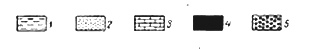 Рис. 5 Геологический профиль Тингутинского нефтегазового месторождения. 1–глины; 2–песчаники; 3–известняки; 4–нефтяные залежи; 5–газовые залежи. 4.2. Геологическое строение В геологическом отношении территории принимают участие отложения двух эратем: мезозойской и кайнозойской. В мезозой выделяются нижние и верхние отложения меловой системы. В кайнозое выделяются палеогеновые, неогеновые и четвертичные отложения. 4.2.1. Литолого-стратиграфическая характеристика Меловая система (К) В меловых отложениях выделяют два отдела, это нижний и верхний. В нижнем мелу (K1 ) скважинами вскрыт только альбский ярус. Альбский ярус (K1 al) разбит на три подъяруса: нижний, средний и верхний. Мощность отложений вскрытой части альба составляет 350-500 м. Нижнеальбский подъярус (K1 al1 ). Вскрыт многочисленными разведочными скважинами. В этих отложениях найден характерный комплекс фораминифер нижнеальбского возраста. Литологически представлен песчаниками, песками, алевролитами серыми и зеленовато-серыми, местами карбонатными с прослоями глин тёмно-серых алевритистых. Нижнеальбские отложения являются главным продуктивным горизонтом. Отложения нижнеальбского подъяруса вскрыты и изучены только на 140 м. Среднеальбский подъярус (K1 al2 ). Фаунистически эти отложения очень бедны. Литологически разделен на две пачки: нижнюю и верхнюю. Нижняя пачка – глины тёмно-серые, почти чёрные, с прослоями алевролитов более светлых. Верхняя пачка – аналогичные глины с большим содержанием алевритистого материала. Средний альб залегает трансгрессивно на нижнеальбских отложениях. Мощность отложений достигает 120-155 м. Верхнеальбский подъярус (K1 al3 ). Залегает непосредственно на среднеальбских глинистых отложениях. При контакте пород с сеноманскими глинистыми отложениями установление контакта нижний – верхний мел затруднительно. Присутствует микрофауна альбского и сеноманского возрастов. Резкие колебания мощностей верхнего альба происходят в основном за счёт неравномерного размыва отложений предсеноманской трансгрессией. Литологически представлен глинами тёмно-серыми, слоистыми с прослоями преимущественно в нижней части алевролитов и песчаников светло-серых и серых. Мощность отложений колеблется от 90 до 200 м. Верхний мел (K2 ). Очень широко распространены на описываемой территории. Верхнемеловые отложения представлены шестью ярусами: сеноманский (K2 s), туронский (K2 t), коньякский (K2 k), сантонский (K2 st), кампанский (K2 km), маастрихтский (K2 m). Сантон разделён на два подъяруса: нижний и верхний. Датский ярус на данной территории выклинивается. Верхний мел залегает на тёмно-серых глинах верхнего альба. Сеноманский ярус (K2 s). Вскрыт на данной территории практически всеми разведочными скважинами. Эти отложения содержат характерный комплекс фораминифер. На границе с нижним мелом залегают алевролиты серые, известковистые, с прослоями глин. Выше по разрезу – глины серые, сильно известковистые, с прослоями алевролитов. В кровле – алевролиты серые с буровым оттенком, с прослоями глин. Мощность отложений от 60 до 110 м. Туронский ярус (K2 t). Трансгрессивно залегает на размытой поверхности сеноманских отложений. Отложения содержат комплекс микрофауны. Отложения турона используют в качестве регионального маркирующего горизонта, репера, свидетельствующим о значительном изменении у
