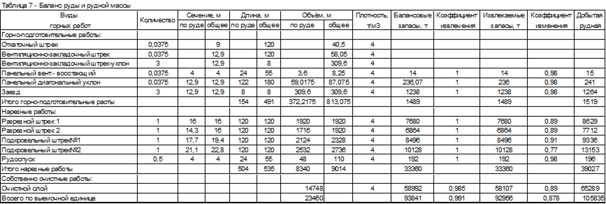 Основные технико-экономические показатели для сплошной слоевой системы разработки с нисходящим порядком выемки слоев: