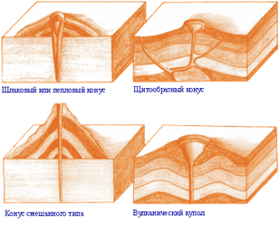 Вулканы - геологические образования на поверхности земной коры или коры другой планеты, где магма выходит на поверхность, образуя лаву, вулканические газы, камни (вулканические бомбы) и пирокластические потоки. Слово "Вулкан" происходит от имени древнеримского бога огня Вулкана. Наука изучающая вулканы - вулканология, геоморфология. Вулканы классифицируются по форме (щитовидные, стратовулканы, шлаковые конусы, купольные), активности (действующие, спящие, потухшие), местонахождению (наземные, подводные, подледниковые) и др Вулканические продуктыМАГМА И ЛАВА. Как и в случае землетрясения, извержение вулкана означает, что какие-то события происходят в недрах Земли. Изучите следующие вопросы, пока Вы читаете этот раздел: Что образуется, когда магма оказывается в ловушке под землей? В каком месте лава выходит на поверхность земли? Каковы последствия внедрения лавы на границах плит? Как можно классифицировать вулканы по их активности? Как отличаются формы вулканических конусов? Магма внутри ЗемлиПороды, которые образуются в результате охлаждения и застывания магмы под землей, называются интрузивными породами. Вы не можете увидеть интрузивную породу, за исключением тех случаев, когда в результате каких-либо геологических процессов скрытая интрузивная порода окажется на поверхности. Например, вода может смыть верхнюю породу и открыть нижележащую. На схеме ниже показаны сразу пять интрузивных структур, поэтому Вы можете увидеть формы и относительные размеры каждой. Батолит, показанный на схеме, такой большой, что часто неизвестно, где находится его основание.