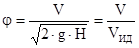Действительная скорость истечения V всегда несколько меньше идеальной из-за наличия сопротивления, следовательно, коэффициент скорости φ всегда меньше единицы. Расход жидкости