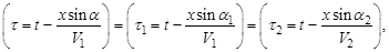 Используя определения касательных напряжений, получим, подставляя z = 0, второе уравнение: