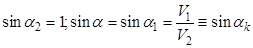 Очевидно, что условием возникновения отраженной волны служит неравенство волновых сопротивлений, контактирующих на границе сред В большинстве случаев скорости и плотности пород изменяются согласованно - более плотные породы являются и более всокоскоростными и наоборот. Исключения из этого правила довольно редки. Наиболее яркий пример - граница между залегающими над соляным куполом известняками и каменной солью. Скорость волны в известняках может быть меньше скорости в соли, тогда как плотность соли меньше плотности известняка. В зависимости от знака неравенства Проведем последовательный анализ поведения коэффициентов рассеивания А и В вторичных волн при изменении угле падения первичной SH-волны: 0≤ α ≤ π⁄2. Угол α = 0 соответствует нормальному падению волны, угол α = π⁄2 является теоретически возможным пределом изменения угла падения, при котором волна скользит вдоль границы. 3. Волны рассеивания при падении SH-волны на кровлю низкоскоростной средыВерхняя среда более плотная и имеет большую скорость распространения волны, чем нижняя:
