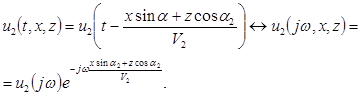 В таком определении амплитудный множитель Обратим внимание на то, что с ростом абсолютного значения частоты ω затухание ускоряется - чем выше частота гармоники, тем быстрее она затухает с ростом z. В функции запаздывания спектра проходящей волны Неоднородные плоские волны играют главенствующую роль в образовании преломленной (головной) волны, которую рассмотрим несколько позже в отдельном разделе. Здесь подчеркнем одно - все особенности неоднородной волны выявлены в результате анализа лишь волнового аргумента проходящей волны при закритическом падении плоской волны на границу раздела. Вид самой волновой функции Итак, установлено, что при