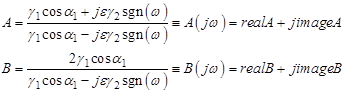 Знаком тождества подчеркнута комплексная зависимость коэффициентов рассеивания от частоты, оправдывающая введенное ранее определение А и В как спектральных коэффициентов рассеивания. В числителе и знаменателе дроби, определяющей А - комплексно-сопряженные выражения: