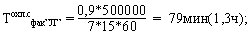 4. Определяем общее количество стволов ГПС-600: Nств.ГПС-600 = NТ ГПС +Nобв. ГПС =4+4=8 ст.; 5. Определяем требуемое количество пенообразователя для тушения горящей жидкости в резервуарах (с учётом запаса пенообразователя): WПО = (NT ГПС *gПО ГПС *tp *KЗ )*2 = (4*0,36*15*60*3)*2 = 7776 л; Следовательно, для тушения нефти в резервуарах будет достаточно пенообразователя. имеющеюся на объекте и пожарных автомобилях. 6. Определяем общий требуемый расход воды для выполнения всех видов работ при тушении пожара: Qобщ = NГ ст”РС-70” *gст + NТБ ст”РС-70” *gст + NТ ГПС *gВ ГПС + Nобв ГПС *gВ ГПС = =9*10+3*7+4*7+4* 5,64+4*5,64= 184л/с. Пожарный водопровод не обеспечит требуемый расход воды на все виды работ по тушению пожара, поэтому необходимо использовать пожарный водоём (500 м3 ). 7. Определяем необходимый запас воды для охлаждения горящих резервуаров: Wводы = NГ ств”РС-70” *gст”РС-70” *tохл рас. = (9*10+3*7)*3600*6=2397 м3 ; Вывод : Противопожарный водопровод (запас воды в пожарном водоёме) также как в Варианте - II не обеспечит требуемый расход воды на охлаждение горящих резервуаров при расчётной продолжительности охлаждения 6 часов. 8. Определяем продолжительность работы стволов "РС-70" (dн =25 мм, охлаждение горящих резервуаров) от пожарного водоёма. Количество стволов, работающих от ПВ, принимаем 8.
