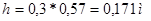 3.Из таблицы [1] подбираются по высчитанному модулю расхода Кп и коэффициенту шероховатости n=0,013 ближайший диаметр d=300мм и соответствующие табличные данные КТ=0,971м3/с и WnТ=13,75м/с. 4.Уточняется истинное значение наполнения коллектора, соответствующее принятым модулю расхода и модулю скорости: 5.По графику «Рыбка» для вычисленного значения А=0,65 определяется степень наполнения аф=0,57 , этому наполнению соответствует В=1,07 6.Глубина равномерного движения находится из формулы :