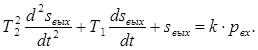 Если пневматический клапан применяется в системе с инерционным объектом, в котором переходные процессы протекают медленно, т. е. скорости изменения р вх и s вых небольшие, то величина ускорения d 2 s вых /d t 2 с точностью, достаточной для практических расчетов, может быть принята равной нулю. Тогда дифференциальное уравнение клапана примет вид /4, с. 45/: