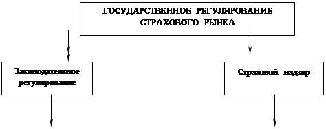 Рис. 2. Государственное регулирование страхового рынка. Современная система страхового надзора опирается на Федеральную службу страхового надзора Министерства финансов РФ, которая помимо лицензирования страховщиков и последующего контроля за их деятельностью, готовит предложения по изменению и дополнению страхового законодательства, а также законов и законодательных актов, оказывающих влияние на целостность страхового рынка и его дальнейшее развитие. Юридические основания осуществления надзора за страховой деятельностью и основной перечень контрольных функций, осуществляемых надзором, установлены в ст. 30, 31, 33 Закона РФ «Об организации страхового дела в Российской Федерации». К основным функциям органа страхового надзора относят: лицензирование деятельности субъектов страхового дела, аттестация страховых актуариев и ведение единого государственного реестра субъектов страхового дела, реестра объединений субъектов страхового дела; контроль за соблюдением страхового законодательства, в том числе путем проведения на местах проверок деятельности субъектов страхового дела, и достоверности представляемой ими отчетности, а также за обеспечением страховщиками их финансовой устойчивости и платежеспособности; выдача в течение 30 дней в предусмотренных Федеральным законом «Об организации страхового дела в Российской Федерации» случаях разрешений на увлечение размеров уставных капиталов страховых организаций за счет средств иностранных инвесторов, на совершение с участием иностранных инвесторов сделок по отчуждению акций страховых организаций, на открытие представительств иностранных страховых, перестраховочных, брокерских и иных организаций, осуществляющих деятельность в сфере страхового дела, а также на открытие филиалов страховщиков с иностранными инвестициями; разработка и утверждение нормативных и методических документов по вопросам деятельности субъектов страхового дела; обеспечение в установленном порядке реализации единой государственной политики в сфере страхового дела. С точки зрения результативности осуществления надзора необходимо соблюдение следующих принципов: стабильность системы органов; стабильность, прозрачность и ясность законодательства, обеспечивающего осуществление надзорных функций; соответствие функций, структуры и методов надзора задачам, установленным в законодательстве; обеспечение эффективного взаимодействия с другими органами исполнительной и законодательной власти; неотвратимость и обязательность применения предусмотренных законодательством санкций. В отечественной практике можно выделить три формы осуществления государственного надзора за деятельностью страховых организаций: предварительный (лицензионный), текущий (контрольный), последующий (статистический). Лицензионная форма надзора регулируется процедурой принятия решения о выдаче лицензии на право осуществления страховой деятельности. Полученная страховщиком лицензия дает право на проведение тех видов страхования, которые указаны в ней с учетом правил страхования, зафиксированных в приложении к лицензии. При необходимости расширения перечня предоставляемых страховых услуг (видов страхования) страховщик вновь проходит процедуру лицензирования и наряду с этим подвергается контролю с
