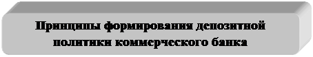 Рисунок 3 – Границы депозитной политики коммерческого банка Рассматривая депозитную политику банка как один из элементов банковской политики в целом, необходимо исходить из того, что основной целью депозитной политики является привлечение как можно большего объема денежных ресурсов по наименьшей цене. Успешная реализация этой многогранной цели депозитной политики банка предполагает решение в процессе ее формирования таких задач, как: – содействие в процессе проведения депозитных операций получению банковской прибыли или созданию условий для получения прибыли в будущем; – поддержание необходимого уровня банковской ликвидности; – обеспечение диверсификации субъектов депозитных операций и сочетание разных форм депозитов; – поддержание взаимосвязи и взаимной согласованности между депозитными операциями и операциями по выдаче ссуд по суммам и срокам депозитов и кредитных вложений; – минимизация свободных средств на депозитных счетах; – проведение гибкой процентной политики; – постоянное изыскание путей и средств уменьшения процентных расходов по привлеченным ресурсам; – развитие банковских услуг и повышение качества и культуры обслуживания клиентов. В данном вопросе целесообразно также рассмотреть механизм формирования депозитной политики коммерческого банка, который схематично представлен на рисунке 4. От эффективности функционирования данного механизма во многом зависит успешное выполнение целей и задач, которые ставятся банком в процессе разработки и проведения депозитной политики. Каждый из этапов формирования депозитной политики коммерческого банка непосредственно связан с остальными и является обязательным для формирования оптимальной депозитной политики и правильной организации депозитного процесса. В процессе разработки механизма депозитной политики банка принимают участие различные структурные подразделения банка. В контексте данного вопроса также необходимо отметить, что важным фактором, определяющим ликвидность банка, является качество его депозитной базы. Критерием качества депозитов является их стабильность. Чем больше стабильная часть депозитов, тем выше ликвидность банка, поскольку в этой части аккумулированные ресурсы не покидают банк. Увеличение стабильной части депозитов снижает потребность банка в ликвидных активах, так как предполагает возобновляемость обязательств банка.
