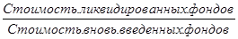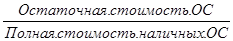 = Он характеризует долю той части стоимости основных средств, которая перенесена на продукт. Обратным показателем является коэффициент годности (КГ ), равный отношению остаточной стоимости к полной: КГ