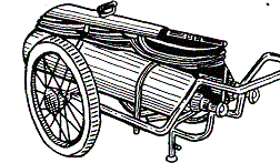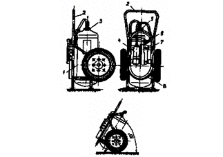 Рис. 8. Передвижной углекислотный огнетушитель ОУ-25:1 — баллон; 2 — запорный вентиль; 3 — шланг;4 — раструб; 5 — тележка