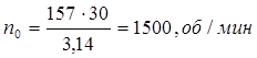 Определяем номинальною частоту вращения, об/мин:
