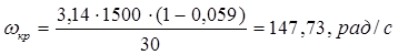 Находим критическую скорость, рад/с:
