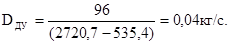 Определим расход греющего пара и тепловую нагрузку аппарата: QДУ =1,03[GВА CВА (tк -tн )+WДУ (hвп -Cв tк )+Qконц ] = DДУ (hг - hконд ); Ск =1,089*0,6+4,183(1-0,6)=2,326 кДж/(кг*К) [6,с.109]; Qконц =tк (GВА CВА -Gк Cк -WДУ Св )=123,72(0,055*3,255-0,027*2,326- -0,028*4,183)=0,012кВт; QДУ = 1,03[0,055*3,255(123,72 - 104,81) + 0,028(2685,6 – 4,183*123,72)+0,012]=96кВт;