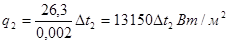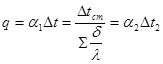 Для установившегося процесса передачи тепла удельная тепловая нагрузка: