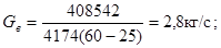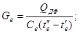 + Тепловая мощность горизонтального теплообменника конденсатора определяется из уравнения теплового баланса: Qк =0,9W[(hп -hк )+C(t/ п -tк )]=Gв Cв (t// в -t/ в ) [14.с.20], (3.5.1.3) где 0,9W - расход вторичного пара в горизонтальный теплообменник конденсатора после ВА и ДУ; С - удельная теплоёмкость жидкого горячего теплоносителя, С=4225 Дж/(кг*К); Gв - расход охлаждающей воды, кг/с; Cв - удельная теплоёмкость воды, Св =4174Дж/(кг*К) при tв =37,5°С; Qк =1,452(2683,8-439,36)103 +1,452*4225(104,81-50)=3595169,79Вт. Расход охлаждающей воды: