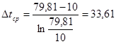 3.5.3 Расчет охладителя конденсата Из конденсатора-дегазатора выходит 1,585кг/с дистиллята, 0,25кг/с дистиллята подается в виде флегмы в выпарной аппарат. Дегазированный дистиллят поступает в корпус охладителя в количестве 1,335кг/с и имеет следующие параметры: Рд =0,12МПа t/ д =104°С, температура дистиллята на выходе из охладителя t// д =50°С. Схема движения теплоносителей прямоточная. В трубках циркулирует охлаждающая вода: t/ в =25°С, t// в =45°С. Средняя температура воды tв.ср =0,5(t/ в + t// в )=0,5(25+45)=35°С. Средняя разность температур: при прямотоке