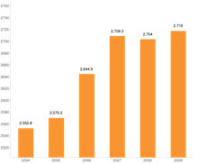 Рис. 15. Величина прожиточного минимума, руб./мес. В 2009 году средняя номинальная заработная плата составила 23 884 рубля, в том числе в декабре размер средней номинальной заработной платы достиг 32 376 рублей.
