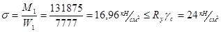 Фактическое значение нормативных напряжений на уровне верха стенки определяем по формуле: