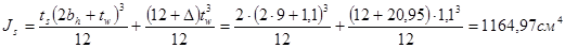 Проверяем устойчивость колонны по свободной оси, предварительно вычисляя геометрические характеристики Момент инерции сечения: