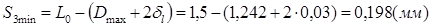 где L0 – расстояние между центрами двух элементов L0 = 1,524 мм; dl – допуск на размещение проводников dl = 0,03 мм; Остальные параметры были вычислены раньше: Dmax = 1,242 мм δp = 0,05 мм δ1 = 0,05 мм bmax = 0,2425мм Имеем,