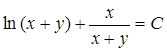 (В последнем уравнении переменные х и у разделяет знак равенства). Проинтегрировав обе части последнего равенства получаем общее решение уравнения в виде неявно заданной функции: