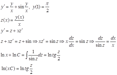 Подставив в последнее равенство z=y/x , найдем общее решение исходного уравнения