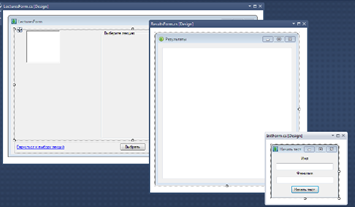 Рисунок 3.8. Формы программы в режиме конструктора 4. Эксплуатационная часть4.1 Требования к вычислительной системе 1. Операционная система Windows XP/Vista/7 32/64 bit. 2. Наличие установленной программы Microsoft Net Framework 2.0 и выше. При отсутствии этой утилиты система работать не будет. 3. Тип процессора – Pentium Celeron 1,6 ГГц и выше. 4. Объем оперативного запоминающего устройства – 512 Мб и более. 5. Объем свободного места на жестком диске – 60 Мб. 4.2 Установка программного продуктаУстановка данного программного продукта не требуется. 4.3 Инструкция по эксплуатации Автоматизированная обучающая система по дисциплине «Программирование» поставляется на лицензионном диске. 1. Вставьте лицензионный диск в дисковод. 2. Откройте папку «Мой компьютер». 3. В папке «Мой компьютер» откройте диск с программой. 4. Запустите программу, кликнув по ярлыке запуска. 5. Откроется окно с выбором тем лекций. 6. Выберете тему лекции и нажмите кнопку «Выбрать». 7. В окне появится лекция по выбранной теме. 8. Далее вы можете вернуться к выбору лекций, нажав ссылку «Вернуться к выбору лекций» или пройти тест, нажав кнопку «Тест». 9. Перед началом теста введите имя и фамилию с клавиатуры и нажмите кнопу «Начать тест». 10. Запустится тест. Выберете правильный, на ваш взгляд вариант ответа и нажмите кнопку «Следующий вопрос». В тесте есть вопросы с многовариантным ответом. Выберете несколько, правильных вариантов и нажмите кнопу «Следующий вопрос». 11. Когда тест будет пройден, появится диалоговое окно с результатами решения и вопросом: «Перейти к выбору лекций». Если нажать кнопку «Да» то появится окно с выбором лекции, если нажать кнопку «Нет», то программа завершит работу. 12. В окне с выбором лекции есть ссылка «Посмотреть результаты». Если перейти по этой ссылке можно увидеть все результаты решения тестов, а именно число прохождения теста, фамилию и имя тестируемого и его результат решения. 4.4 Демонстрационная часть работы продукта. Запускаем программу с лазерного диска при двойном щелчке по ярлыку запуска. На рисунке 4.1 показано, что при запуске программы пользователю будет предложено выбрать тему для самостоятельного изучения.