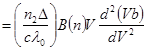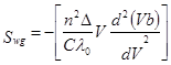 де wg позначає "хвильоводний", щоб показати, що (6) представляє внесок в часову дисперсію в одномодовому волокні шляхом хвильоводної властивості волокна. Відповідно, Swg ´L називається хвильоводною дисперсією. Хоча, строго кажучи, щоб розрахувати Swg , треба вирішити для l=0 (відповідає моді LP01 ), щоб одержати b, і, таким чином, Vd2 (Vb)/dV2 при певних V в межах одномодової області. Можна також використати таке емпiричне рівняння для розрахунку Vd2 (Vb)/dV2 : Vd2 (Vb)/dV2 »0,80+0,549(2,834-V)2 . (7) Виходячи з подібної процедури зневаги другим членом в (6), можна показати, що внесок в дисперсію моди від впливу матеріалу дається шляхом:
