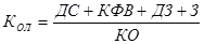 где Кф – коэффициент финансирования; СК – собственный капитал предприятия (форма №1, стр. 490); ЗК – заемный капитал предприятия (форма №1, стр. 690 и стр. 590). Коэффициент общей ликвидности определяется отношением всех оборотных активов к текущим обязательствам предприятия: