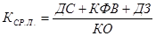 где КОЛ – коэффициент общей ликвидности; ДС – денежные средства (стр. 260); КФВ – краткосрочные финансовые вложения (стр. 250); ДЗ – дебиторская задолжность (стр. 240); З – запасы (стр. 210);КО – краткосрочные обязательства (стр. 690). Коэффициент срочной ликвидности – характеризует возможности предприятия погасить краткосрочные обязательства при условии своевременных расчетов с дебиторами. Коэффициент срочной ликвидности рассчитывается как отношение ликвидной части оборотных средств к краткосрочным обязательствам.