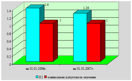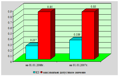 Рисунок 5. Коэффициент обеспеченности финансовых обязательств активами, К3 Коэффициент абсолютной ликвидности: На 01.01.2006 г.:231842 / 448333 = 0,517 На 01.01.2007 г.:315340 / 728341 = 0,433
