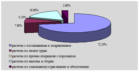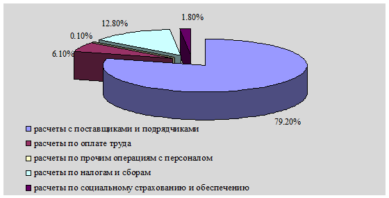 Рисунок 9. Структура кредиторской задолженности УП «Минский хладокомбинат № 1» на 01.01.2006 г.