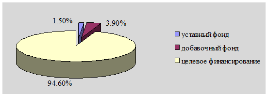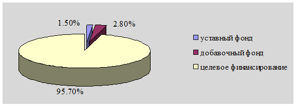 Рисунок 12. Структура дебиторской задолженности УП «Минский хладокомбинат № 1» на 01.01.2007 г. По сравнению с 2005 г. в 2006 г. в структуре дебиторской задолженности УП «Минский хладокомбинат № 1» произошли следующие изменения: - увеличение расчетов с покупателями и заказчиками на 1370 тыс. руб. и снижение их удельного веса в общей сумме дебиторской задолженности на 2,4 %; - увеличение расчетов учредителями по вкладам в уставный фонд на 1725 тыс. руб. и увеличение их удельного веса в общей сумме дебиторской задолженности на 2,7 %; - снижение прочей дебиторской задолженности на 4 тыс. руб. и снижение ее удельного веса в общей сумме дебиторской задолженности на 0,3 %. Увеличение дебиторской задолженности УП «Минский хладокомбинат № 1» и ее доли в активах организации свидетельствует о неосмотрительной кредитной политике организации по отношению к покупателям или о неплатежеспособности и банкротстве части покупателей. УП «Минский хладокомбинат № 1» может сократить отгрузку продукции, тогда счета дебиторов уменьшатся. Анализ структуры собственного капитала УП «Минский хладокомбинат № 1» приведен в таблице 10. По сравнению с 2005 г. в 2006 г. в структуре собственного капитала УП «Минский хладокомбинат № 1» произошло увеличение средств добавочного фонда на 14463 тыс. руб. (или на 1,1 % в общей сумме собственного капитала) и снижение средств целевого финансирования на 40592 тыс. руб. (или на 1,1 % в общей сумме собственного капитала). Размер уставного фонда и его удельный все в структуре собственного капитала УП «Минский хладокомбинат № 1» остался неизменным. Таблица 10. Анализ структуры собственного капитала УП «Минский хладокомбинат № 1»