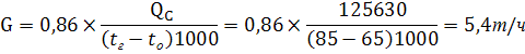 Витрати води. що проходять через горловину G, т/ч, обчислюються по залежності: