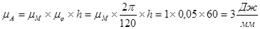 2.8 Построение диаграммы работ движущих сил Построение диаграммы работ движущих сил осуществляем путём графического интегрирования диаграммы приведённых моментов. Для этого на диаграмме Мп на расстоянии h, слева от оси ординат ставим точку О, которую последовательно соединяем с ординатами "средних значений" Мп. По этим линиям строим диаграмму Ад. Принимаем h =60 мм Тогда масштабный коэффициент для диаграммы работ равен