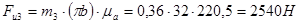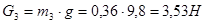 2. Сила тяжести шатуна, направленная из точки S2 вниз перпендикулярно ОВ