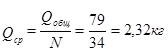 Средняя масса одного шпурового заряда будет равна: