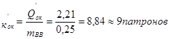 Из условия размещения в шпуре целого числа патронов, количество патронов в каждом шпуре принимаем: Во врубовом шпуре: В отбойном шпуре: В оконтуривающем: Фактическая масса заряда каждого шпура будет равна: