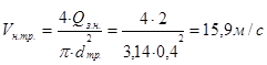 Выбор типа и диаметра вентиляционного трубопровода. Тип вентиляционных труб должен соответствовать площади поперечного сечения и длине выработки. Диаметр вентиляционных труб выбирается из расчёта, чтобы скорость движения воздушной струи по трубопроводу не превышала 20 м/с. Для нагнетательного вентилятора принимаем текстовинитовые гибкие вентиляционные трубы. Их главное достоинство – небольшая масса и невысокое аэродинамическое сопротивление. Принимаем для нагнетательного вентилятора трубы из прорезиненной ткани (тип МУ) диаметром 0,4 м. У гибкого трубопровода в один из швов вмонтированы специальные крючки, с помощью которых он подвешивается к протянутому вдоль выработки тросу.