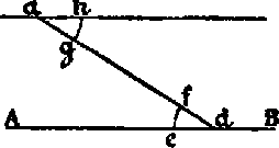 Рис. 2. Построение перпендикуляра Проведение параллельных линий. К проведенной линии АВ нужно провести параллельную линию через точку а. На линии АВ отмечают какую-либо точку в и соединяют ее прямой линией с точкой а. На линии аd, из точки в описывают дугу произвольным радиусом df; точно таким же радиусом fg описывают окружность около точки a, как центра. На этой окружности от точки а отмеряют дугу, равную по длине дуге еf, и отмечают точку h. Соединив эту точку с точкой а и продолжив эту прямую в обе стороны, получим линию, параллельную de (рис. 3).