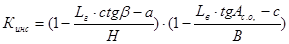 где Lг , Lв – выступ плоскости стены от поверхности окна; для кирпичного здания Lг = Lв = 0,14м /4/; Н, В – высота и ширина окон; Нср = (1,8+1,0)/2=1,4м; В = 3м а, с – откос солнцезащитных козырьков от окна. Так как в проектируемом здании козырьки не предусмотрены, то а = с = 0; β = arctg (ctg h · cos Ac. о . ) где h – высота стояния солнца /4, табл. 22.3/ ; h = 38град Ac . o . – солнечный азимут /4, табл. 22.3/, град; Ac (ю)= 72град Ac (с)= 180-72=108град β = arctg (ctg 38 · cos 72) = 21,6 Для юго-восточной стороны: