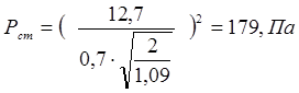 где ρ – плотность воздуха, принятая равной 1,2кг/м3 .