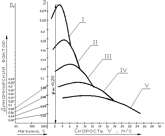 где kB – аэродинамический коэффициент обтекаемости, Н•с2/м4 (kB = 0,6 Н•с2/м4), A - лобовая площадь автомобиля, м2 (A = 5,41 м2). Динамический фактор: