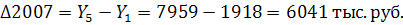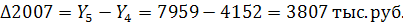 Таким образом, величина денежной выручки в среднем за 6 лет составила 3711,17 тыс. руб. С целью изучения динамики используются следующие аналитические показатели динамики денежной выручки: 1) Абсолютный прирост 2) Темп роста 3) Темп прироста 4) Абсолютное значение 1 % прироста 5) Средний абсолютный прирост 6) Средний темп роста Методику расчета и экономический смысл этих показателей рассмотрим исходя из данных таблицы 1. Обозначим годы и, соответственно, денежную выручку индексами Y1-2003г., Y2-2004г. и так далее до 2008 г. и выявим динамику выручки с помощью выше перечисленных показателей. 1. Абсолютный прирост показывает, на сколько единиц в абсолютном выражении увеличилось или уменьшилось изучаемое явление. Он определяется двумя способами – цепным и базисным. а) Цепной. Определяется как разность между каждым последующим уровнем ряда динамики и предыдущим уровнем: