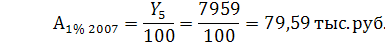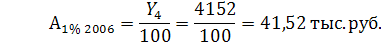 3. Абсолютное значение 1% прироста. Этот показатель служит косвенной мерой базисного уровня. Представляет собой одну сотую часть базисного уровня, но одновременно представляет собой и отношение абсолютного прироста к соответствующему темпу роста. Определяется только цепным методом. Для каждого последующего года рассчитывается как отношение предшествующего уровня к 100: