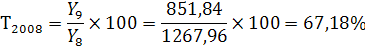 Особенность данного индекса заключается в том, что он улавливает изменения не только количества реализованной продукции, но и ее структуры. Увеличение количества реализованного подсолнечника в 2008 году не значительно повысило уровень рентабельности, а почти оставило его прежним (всего на 0,75%) по сравнению с 2007 годом. Влияние второго фактора: