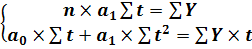 Представим данные в системе нормальных уравнений и получим следующие выражения: